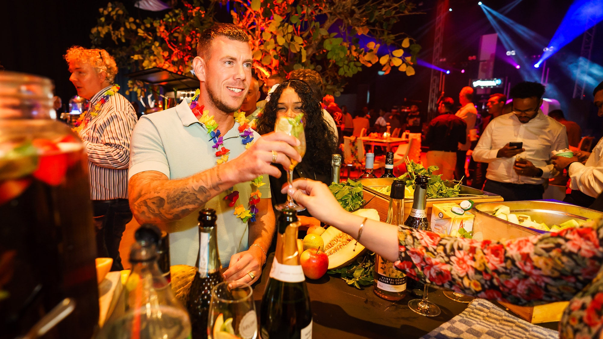 Bij een tropical party hoort eten dat perfect past bij de zomerse sfeer. Denk aan handgedraaid ijs van Looping Good, een versgebakken pizza die je zelf samenstelt, en – als je wilt – een Caribische barbecue met geuren die je al van ver tegemoetkomen. Geen gedoe met gangen of vaste menu’s, maar vrij rondlopen, ontdekken en proeven. Precies zo relaxed als de rest van het feest. Om de dorst te lessen kies je bij de sangriabar verschillende soorten sangria, met of zonder cava. Allemaal fris, fruitig en heerlijk tropisch.